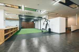 食事スペースとジムスペースで分けられています。