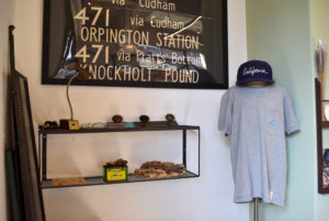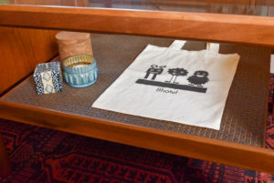 ⇩打合せスペースには、国内外から集めた小物や雑貨などをディスプレイしております。
