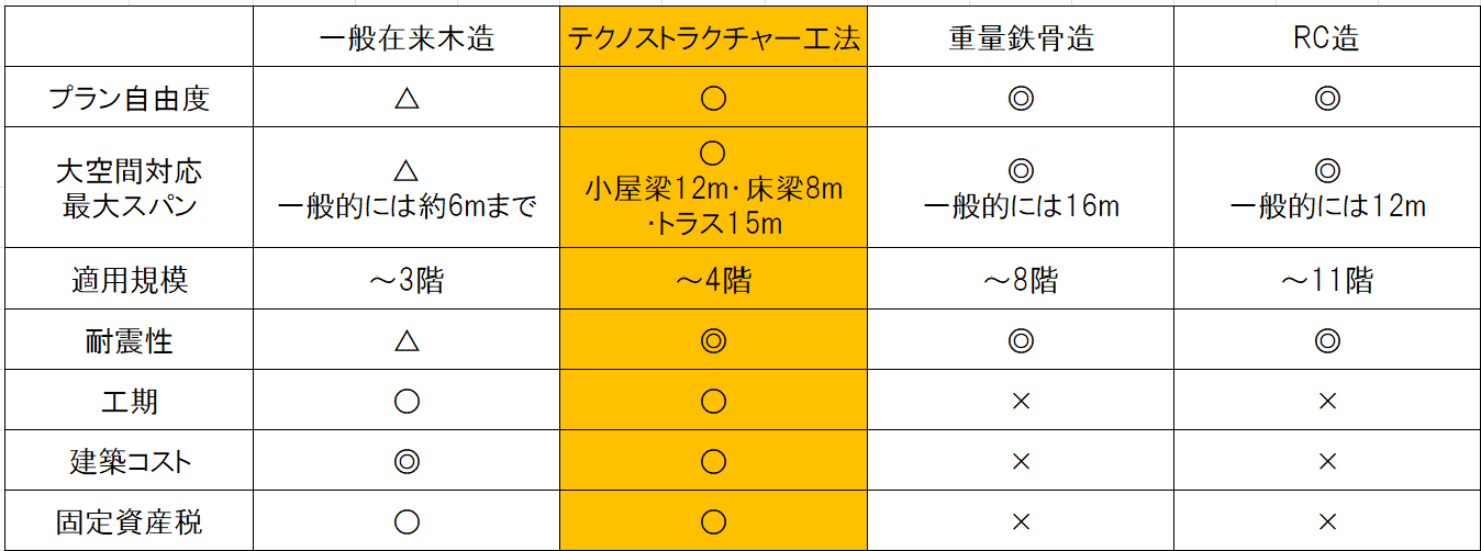 戸建て住宅よりも、店舗や事務所など非住宅に向いている工法といえます。
